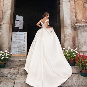 Satin Off The Shoulder Wedding Dress Etsy